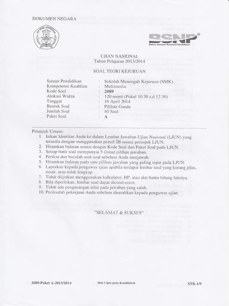 Untuk tahun pelajaran 2017/2018 ada perbedaan dengan tahun sebelumnya, sudah menerapkan k7.13. Soal tryout 2 31 feb 2018 multimedia. Soal un produktif teori kejuruan otomotif tsm dan tkr beserta jawabannya. Soal ipa smk soal ips soal kejuruan multimedia soal kelas x . Kumpulan soal un teori kejuruan multimedia 2013 2014 lengkap.